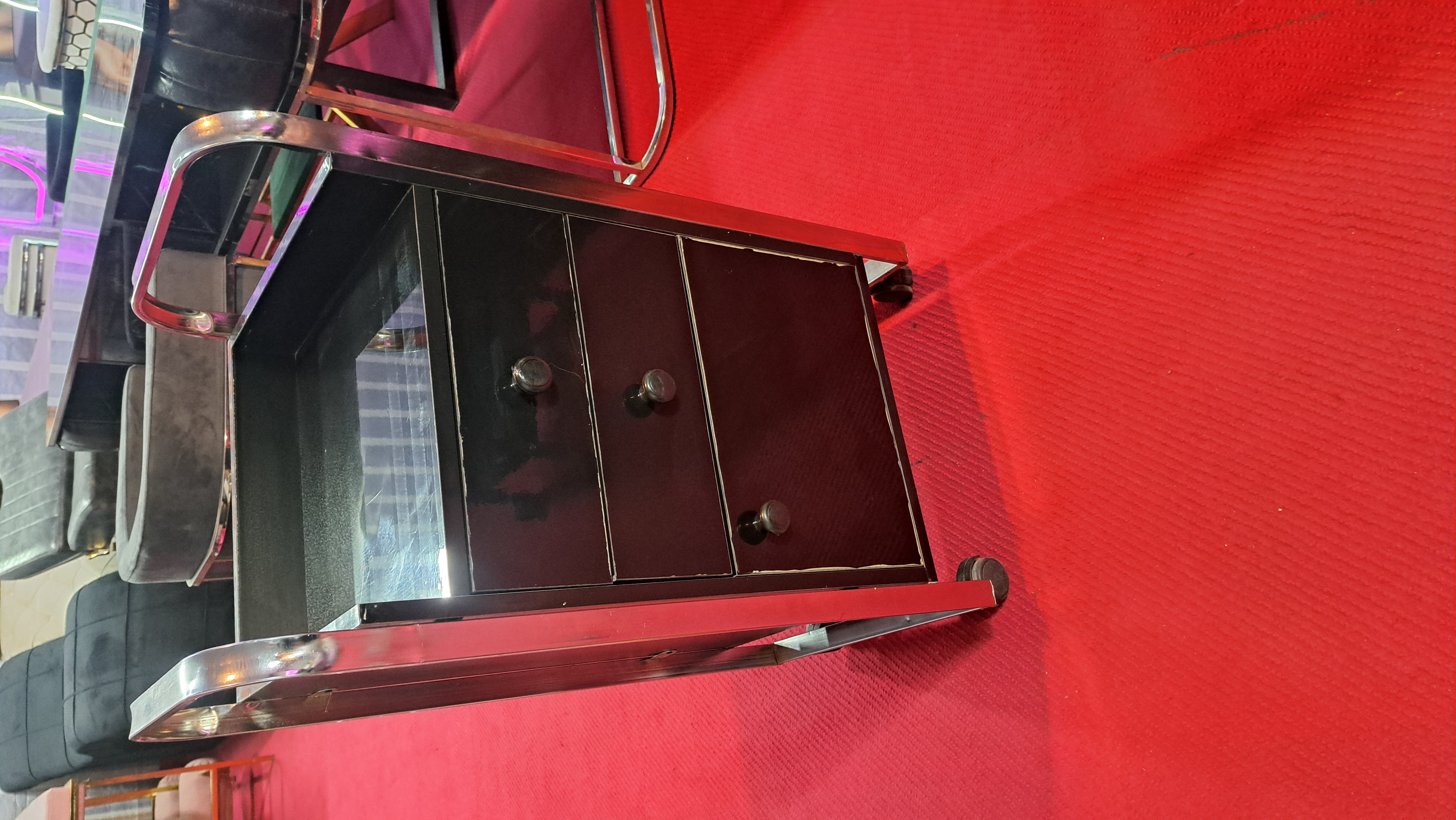ترولی چوبی با فریم فلزی آبکاری کروم وفورتیک واستاتیک رنگ چوب قابل تغییر